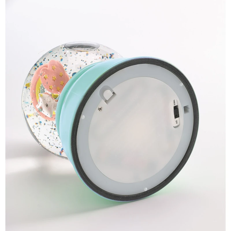 Mit den Nachtlichtern von DJECO schläft es sich entspannt ein: Das Einhörnchen sorgt für besonders süße Träume und lässt völlig geräuschlos die Pailletten im Inneren der Schneekugel herumwirbeln. Ein Timer sorgt dafür, dass das Licht nach 45 Minuten erlischt – gute Nacht!