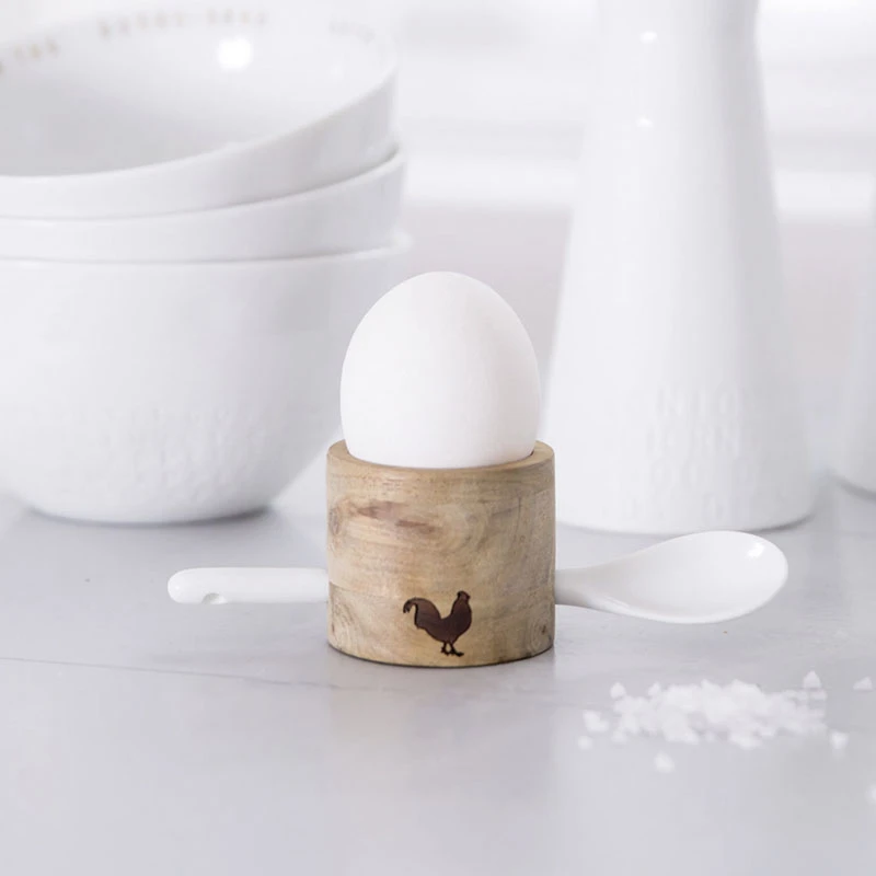 Zu einem leckeren Frühstück gehört für viele Menschen auch ein Ei – der Klassiker schlechthin auf dem Frühstückstisch. Da das Auge bekanntlich „mit isst“, legt der Traditionshersteller räder bei seinen Eierbechern viel Wert auf ein besonders hübsches sowie hochwertiges Design. Dieses Set besteht aus einem aus Akazienholz gefertigten Becher samt Gravur sowie einem Porzellan-Löffel.