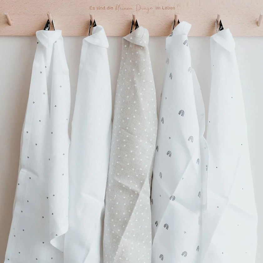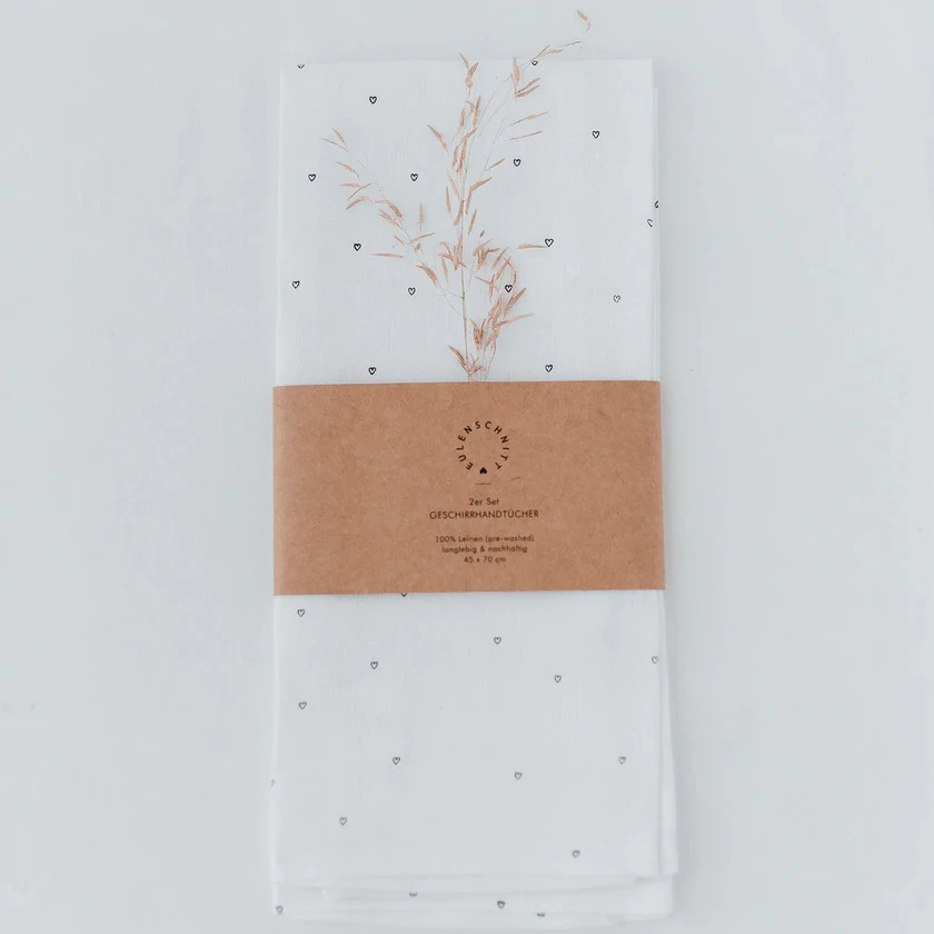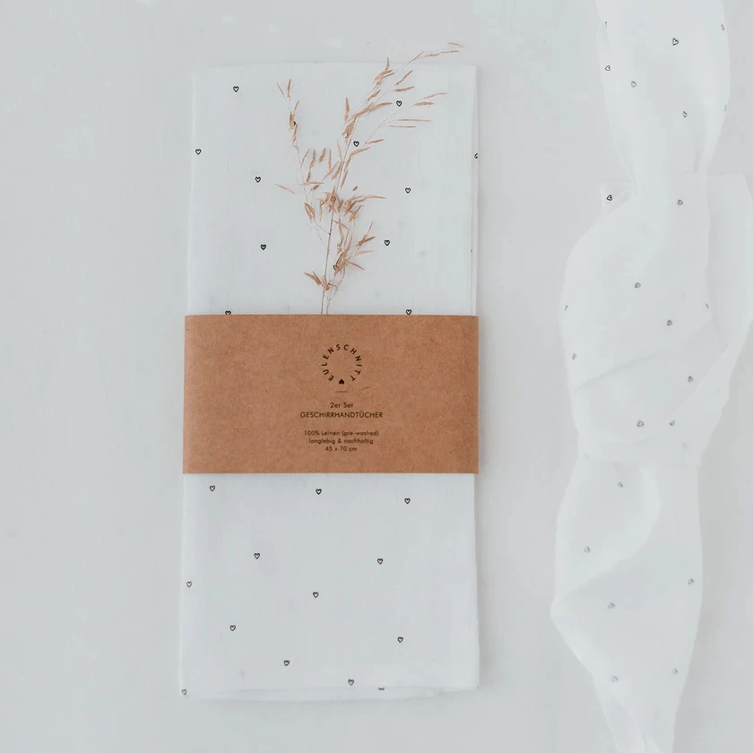 • Leinen-Hinweis: Leinen ist eine Naturfaser; es ist normal, dass die Geschirrtücher anfangs nicht besonders saugfähig sind, dies ändert sich im Laufe der Zeit