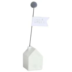 Wenn das mal kein moderner Gruß ist: In einem kleinen Papierhäuschen befindet sich ein noch kleineres Häuschen aus Porzellan samt Gruß-Fähnchen – ein echter Glücksbringer. Die „Hauspost“ von räder wird dank ihrer kreativen Darstellung so zur idealen Geschenkidee.