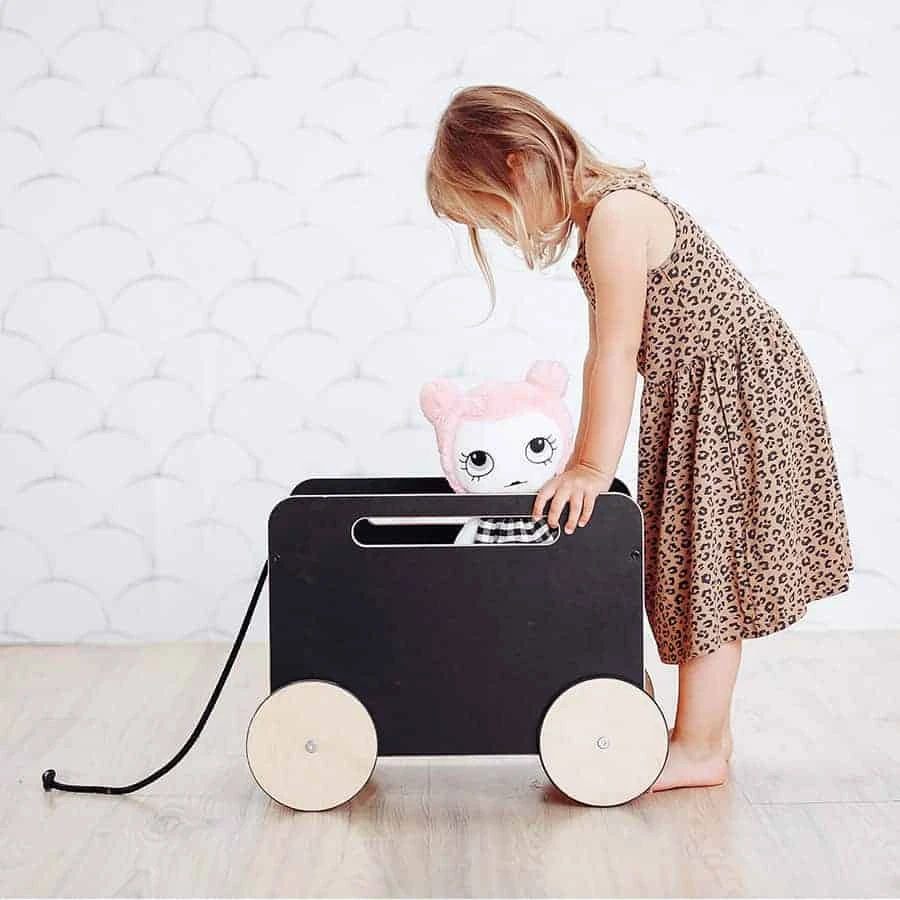 Die handgemachte Holz-Spielzeugkiste eignet sich ideal zur Aufbewahrung von Spielsachen und, dank ihrer Räder, auch zu deren Transport vom einen in den anderen Raum – so gehört Unordnung der Vergangenheit an! Und wer weiß: Vielleicht wollen Kuscheltiere darin eine Rundfahrt durch die Wohnung wagen?