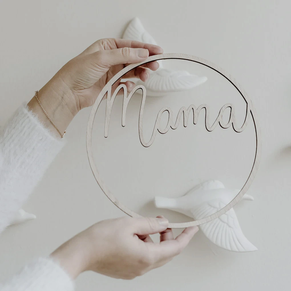 Dieses stilvolle Deko-Objekt aus Laser-geschnittenem Holz von Eulenschnitt ist die ideale Geschenkidee für Mama – ob nun zum Muttertag, zum Geburtstag oder „einfach mal so“. Die schwungvolle Schrift zeugt von hoher Eleganz und dank des zeitlosen Designs passt der Kranz praktisch in jedes Interieur. Er kann sowohl aufgestellt als auch aufgehängt werden – Dekoration nach Belieben!