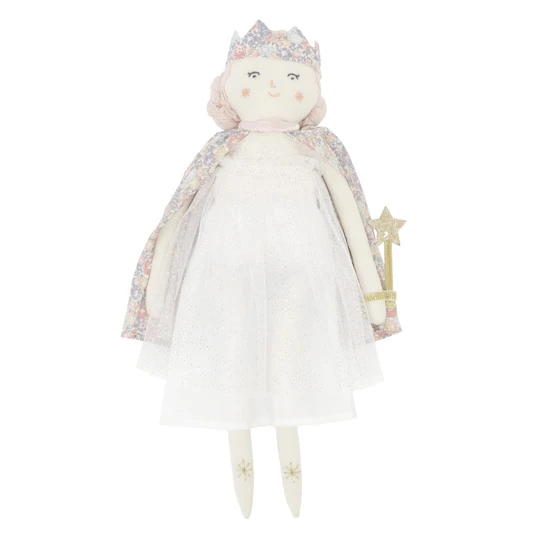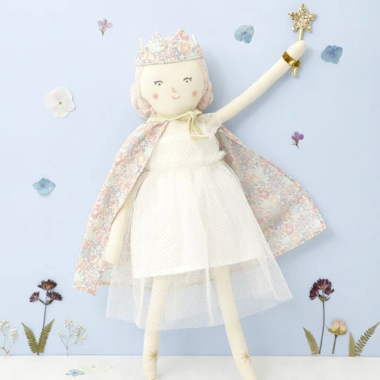 Jede Prinzessin braucht eine treue Beraterin, die sie auf Schritt und Tritt mit gutem Rat begleitet. Für diese Position bestens geeignet ist diese funkelnde Puppe von Meri Meri aus weicher Baumwolle. Die gestickten Gesichtszüge der Mini-Prinzessin strahlen ein hohes Maß an Friedlichkeit aus, während Krone und Zauberstabe um die Wette funkeln. Für einen zusätzlichen floralen Touch sorgt die Blumenmusterung des Umhangs.