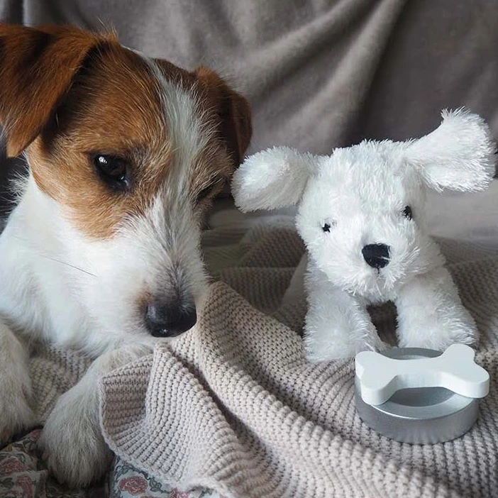 Dieses knuffige Welpen-Kuscheltier von JaBaDaBaDo hat sein Zuhause in einer praktischen und hübsch designten Tragetasche. Neben der stylishen „Unterkunft“ beinhaltet das Set ein Spielzeug-Shampoo und eine Bürste aus Holz, womit die angemessene Pflege des kleinen Plüschfreundes sichergestellt werden kann. Da ein Welpe natürlich auch gefüttert werden muss, liegen dem Set Napf und Knochen bei. So ist der Hund rundum bestens versorgt!