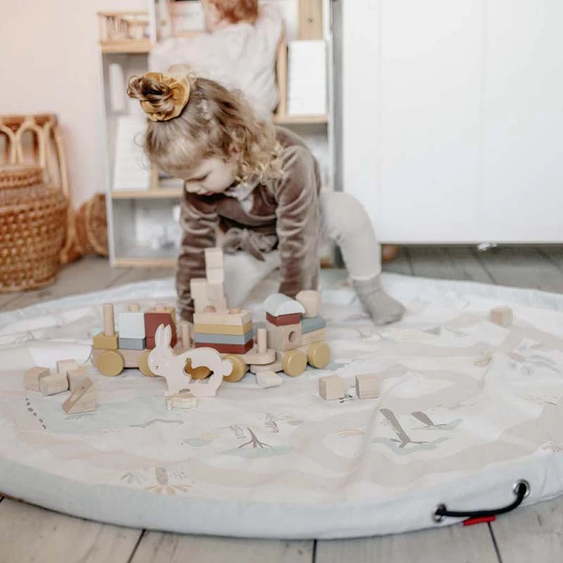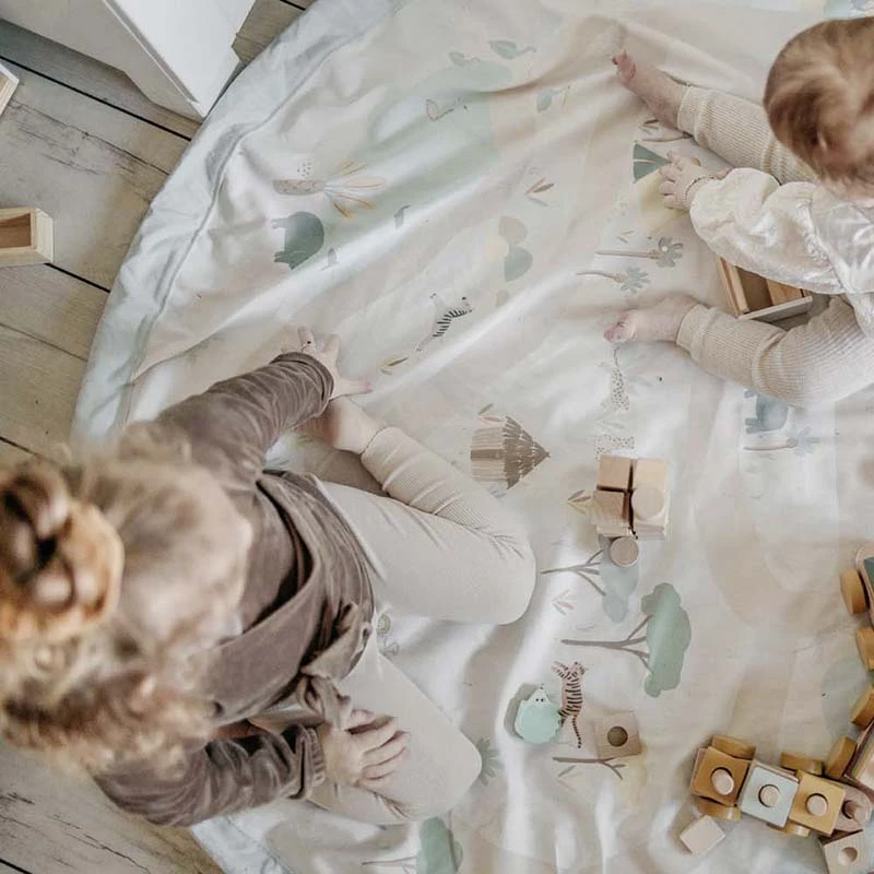 Die Toy Storage Bags der belgischen Marke Play&Go sind weit mehr als nur Spielteppiche für aktive Kids: Sie dienen zeitgleich auch als Aufbewahrungsbeutel. Nach dem Spielen am Boden können sie mitsamt dem darauf befindlichen Spielzeug einfach zusammengerollt, zugeschnürt und verstaut werden. Somit sind sie auch ideal für unterwegs geeignet und können überall hin mitgenommen werden. Dieser Toy Storage Bag entstammt der „Print“-Kollektion von Play&Go, die vor allem durch ihre süßen Designs Extrapunkte einheimst.