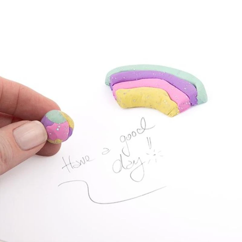Mix & have fun! Mit diesem Knet-Radierer-Set und der Extraportion Glitzer zu arbeiten, macht einfach Spaß. Mithilfe der Knetmassen lassen sich ganz eigene Radierer in allen möglichen Formen und Farben erstellen – zum Beispiel Regenbogen.