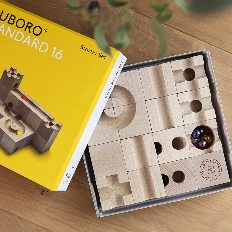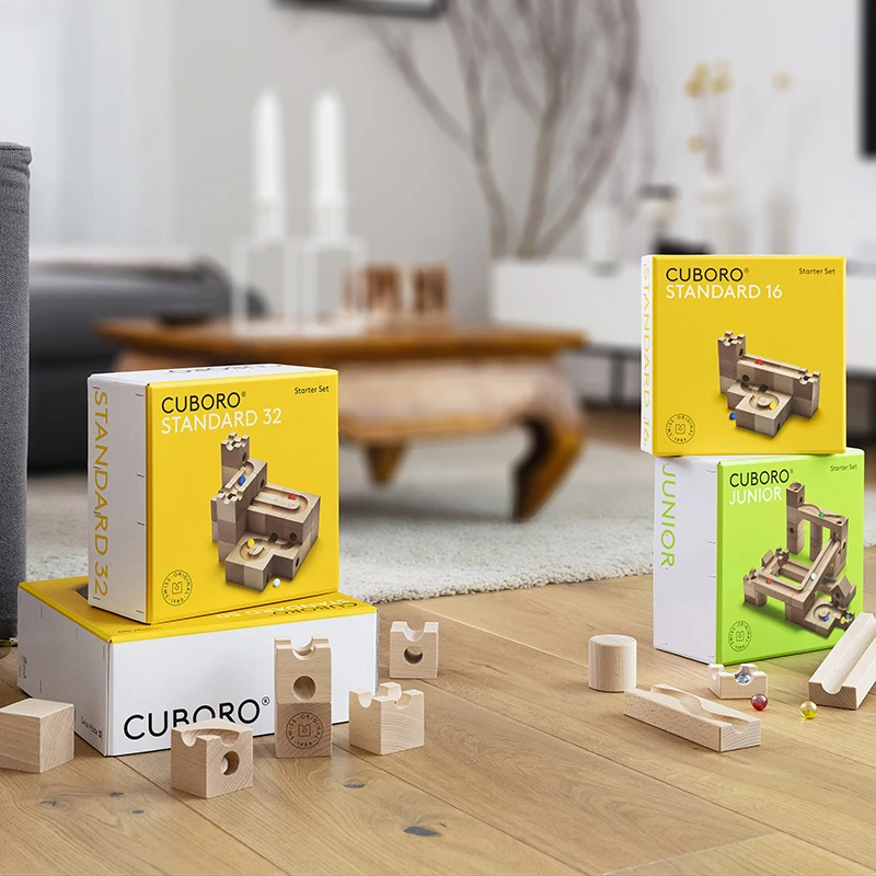 In die faszinierende Welt von CUBORO tauchen vor allem kleine Baumeister und experimentierfreudige Kids ein. Mit hochwertigen Holzelementen wie Schienen und Würfeln, die in den jeweiligen Sets enthalten sind, lassen sich im Nu coole Kugelbahnen, aber auch andere eindrucksvolle Bauwerke errichten. Für die Herstellung seiner Produkte verwendet das Schweizer Unternehmen dabei ausschließlich naturbelassenes Buchenholz aus nachhaltiger Waldwirtschaft.