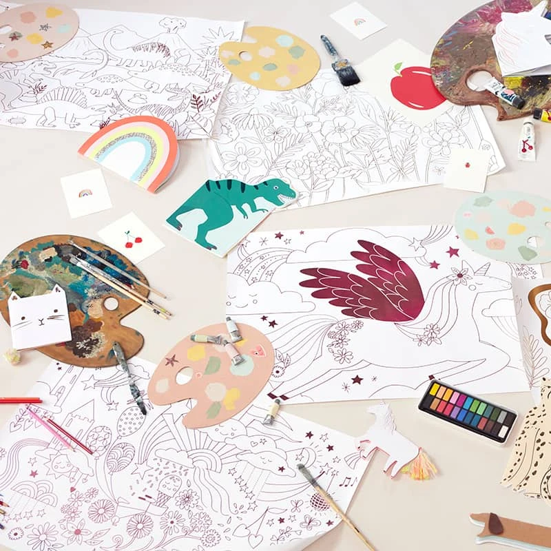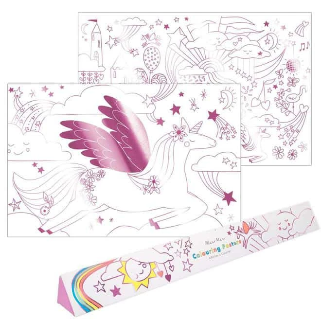 Mit diesem Set von Meri Meri, bestehend aus zwei Ausmal-Postern, macht man jeden künstlerisch begabten Einhorn-Fan glücklich. Die Poster sind aus umweltfreundlichem Papier hergestellt und mit schönen rosa Foliendetails bestückt. Mit Farben befüllt, sind sie ein fabelhaftes Deko-Highlight!