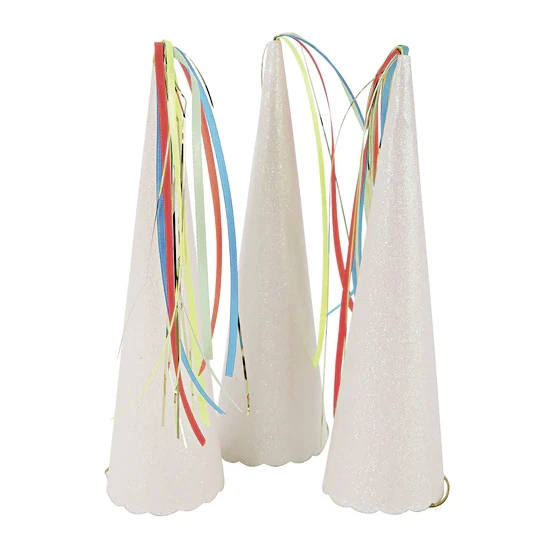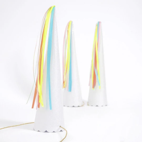 Die bunt verzierten Einhorn-Partyhüte von Meri Meri sind ein ausgefallener Party-Gag auf jeder passenden Mottoparty, der garantiert für grinsende Gesichter sorgt. So werden die Partygäste im Handumdrehen selbst zu feierwütigen Einhörnern – und der Spaß kann beginnen!