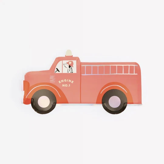 Diese Pappteller, die in der Form eines Feuerwehrautos ausgestanzt wurden, werten den Tisch jeder Party mit Garantie auf und begeistern vor allem Nachwuchs-Rettungskräfte. Hinter dem Steuer sitzt ein süßes Hündchen mit Helm, das bereit für den „Kuchen-Einsatz“ ist. Tatü tata – so kann die Feuerwehr-Feier starten!