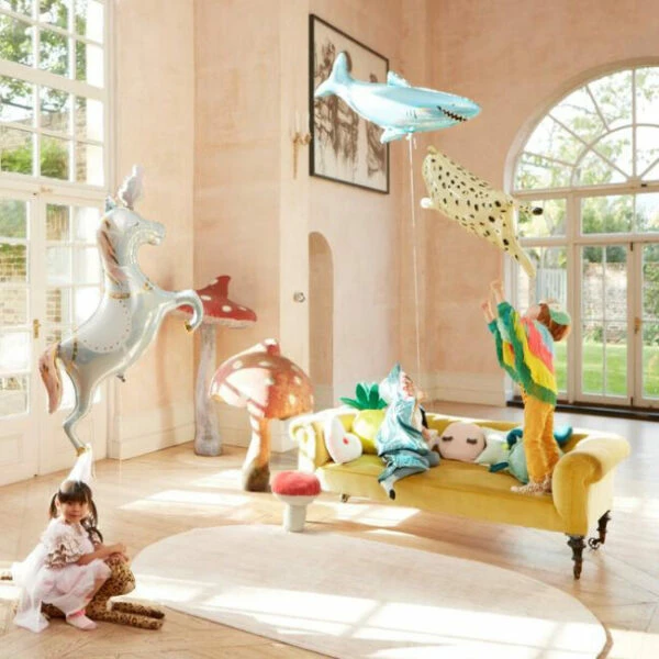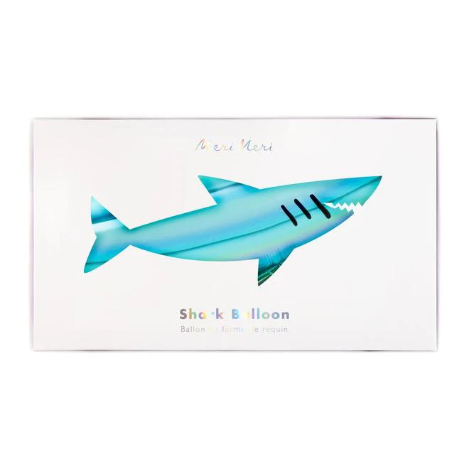 Dieser dekorative Riesenballon von Meri Meri hat die Form eines gefährlichen Hais, der als Ehrengast jede Party bereichert. Mit einer Vielzahl an glänzenden Details ist der riesige Folien-Ballon ein stilvolles Accessoire für jede Feier – und bietet sich auch ideal für eine Unterwasser-Motto-Party an!