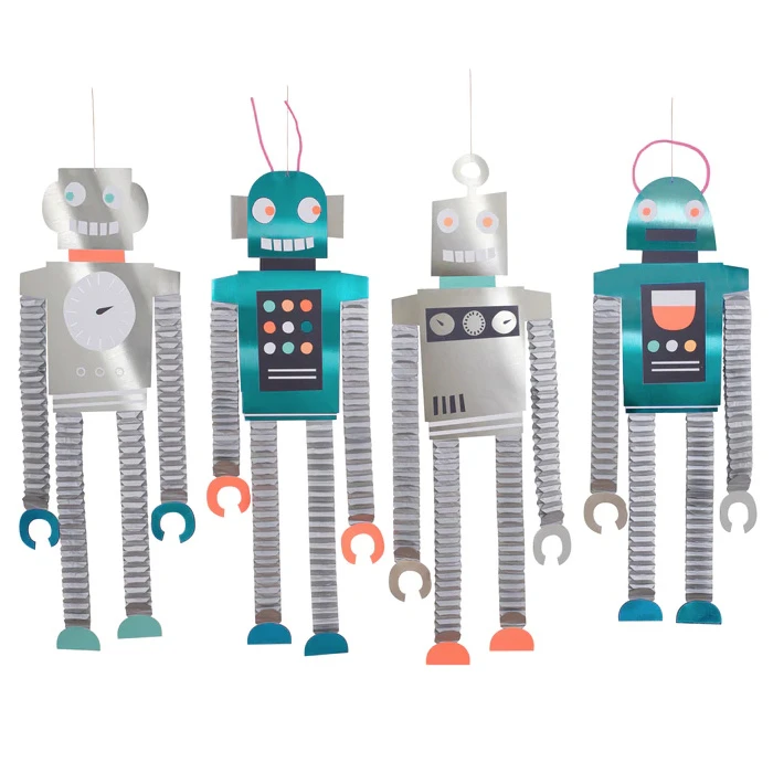 Dieses glänzende Deko-Set von Meri Meri sorgt für eine außerirdische Atmosphäre auf jeder Weltraum- und Roboter-Mottoparty. Das Set beinhaltet vier lustige Deko-Roboter im Honigwaben-Design, von denen jeder fast einen Meter groß ist. Viele glanzvolle Details sorgen für das gewisse Extra.
