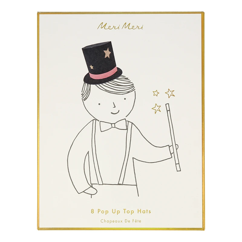 Was wäre ein echter Zauberer nur ohne seinen Hut? Damit auch die Kinder sich wie echte Magier fühlen können, gibt es von Meri Meri natürlich einen passenden Zylinder mit tollen Sternen und einem roten Kontrastband. Damit er auch gut sitzt, ist der Hut an einem goldenen Gummiband befestigt.