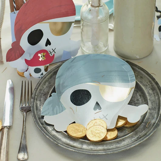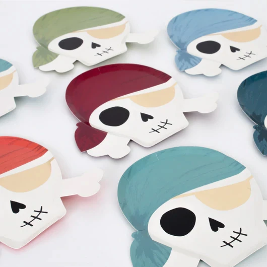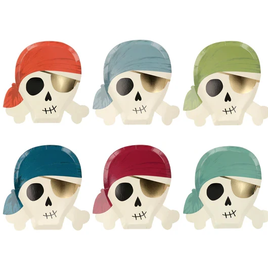 Das Auge isst bekanntlich mit. So wirkt jedes Geburtstagsessen dank dieser stylischen Pappteller von Meri Meri gleich noch viel cooler und schmackhafter! Die in der Form von Totenköpfen gestalteten, extra dicken Pappteller sind dank der liebevollen Illustration garantiert der Brüller auf der nächsten Piraten-Mottoparty. Die Kopftücher sind in sechs verschiedenen Farben gehalten.