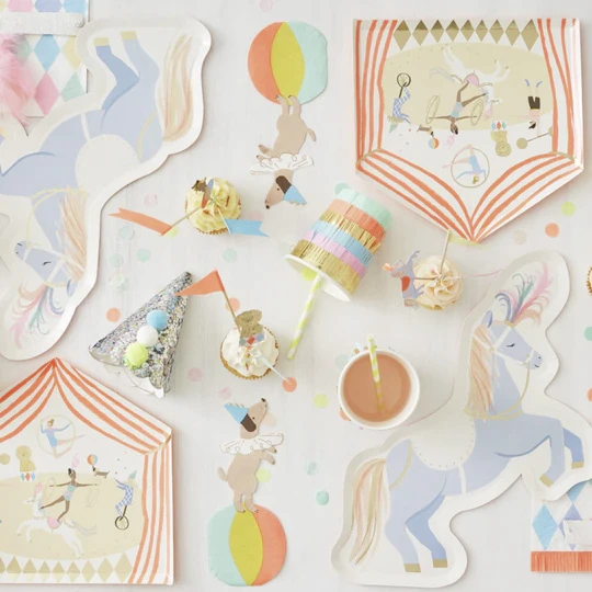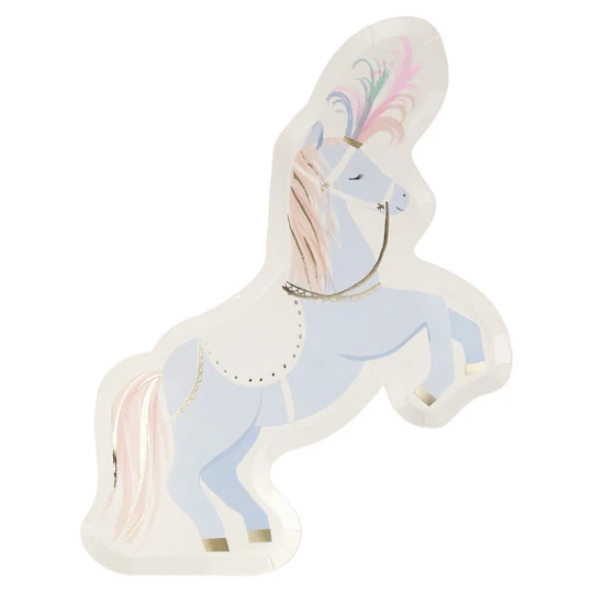 Das Auge isst bekanntlich mit. So wirkt jedes Essen dank dieser stylischen Pappteller von Meri Meri gleich noch viel cooler und schmackhafter! Die Partyteller kommen in der außergewöhnlich gestanzten Form eines Zirkushengstes daher und versüßen vor allem Pferden- und Zirkusfans jedes Party-Essen.