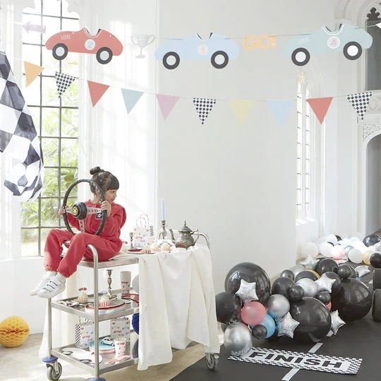 Diese dekorative Girlande von Meri Meri darf auf der nächsten Mottoparty für Nachwuchs-Rennfahrer auf keinen Fall fehlen. An der Schnur befinden sich verschiedenfarbige Rennautos sowie Trophäen fürs Siegertreppchen, die für viel Atmosphäre sorgen. Die seichten Pastellfarben sorgen dafür, dass die Girlande in jedem Ambiente gut aussieht.