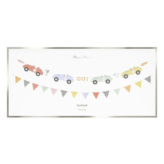 • Set besteht aus zwei Girlanden: eine mit Rennautos, eine mit Flaggen