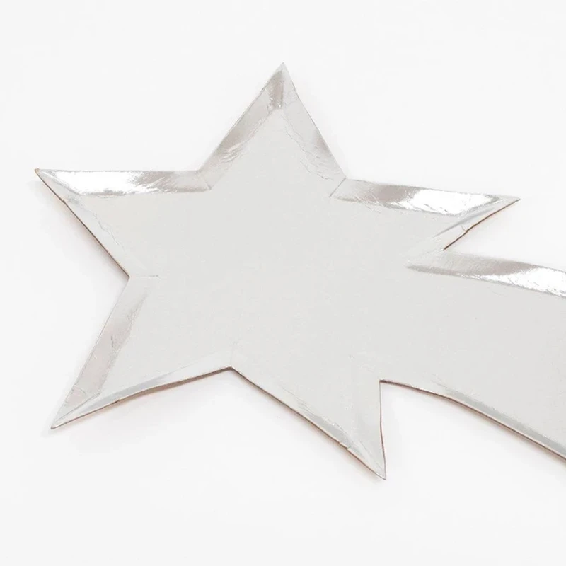 Mit den „Shooting Star“-Servier-Papptellern von Meri Meri wird besonders stylisch gegessen. Die großen Servierteller eignen sich perfekt, um kleine Häppchen herumzureichen oder diese elegant und außergewöhnlich anzurichten. Nicht nur die tolle Form, sondern auch die glänzende Silberfolie zieht dabei alle Blicke auf sich.