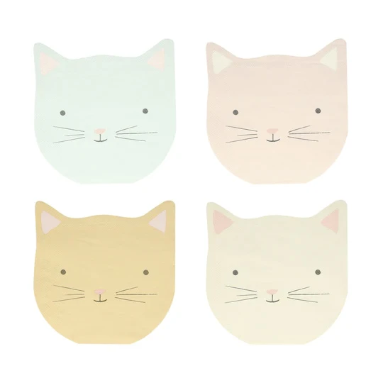 Diese Servietten, die in der Form eines Kätzchens ausgestanzt wurden, werten den Tisch jeder Party mit Garantie auf und begeistern vor allem Tierliebhaber. Sie unterscheiden sich in vier verschiedenen Farben, haben jedoch eines gemeinsam: Sie lächeln in Anbetracht der vielen Leckereien, die gleich auf ihnen landen!