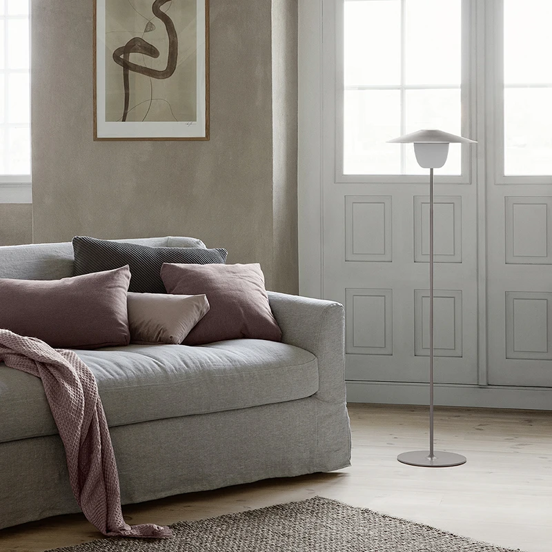 Die „ANI LAMP“ von blomus ist auch in der größeren „FLOOR“-Variante ein echtes Allround-Talent in Sachen Beleuchtung: Sie ist sowohl innen als auch außen nutzbar und kann sich, je nach Bedarf, im Handumdrehen von einer Steh- zu einer Hängelampe verwandeln. Sowohl Standfuß als auch Seil sind hierfür im Lieferumfang enthalten. Per Touch sind zudem zwei verschiedene Helligkeitsstufen einstellbar und dreht man den Lampenschirm, verändert sich auch der Lichtkegel.