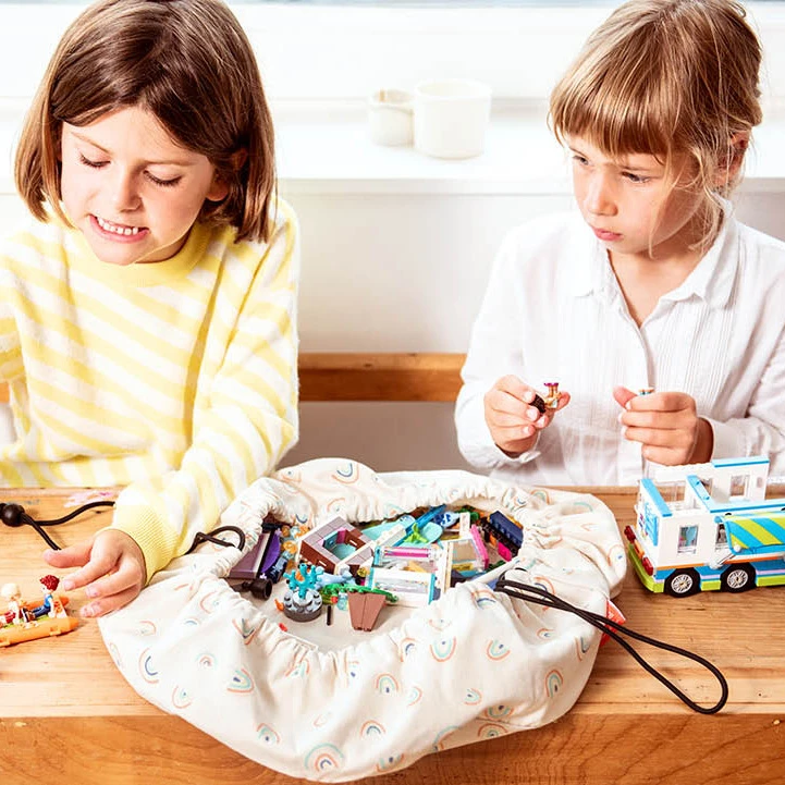 Die „Mini“-Kollektion der Toy Storage Bags aus dem Hause Play&Go punktet vor allem mit ihren süßen, themenbasierten Designs – vom Rennauto über den Regenbogen bis hin zur Superheldin ist hier jedes erdenkliche Motiv dabei! Dabei sind die Mini-Bags weit mehr als nur Aufbewahrungsbeutel und dienen im ausgerollten Zustand als weiche Spielunterlage. Nach dem Spielen können sie mitsamt dem darauf befindlichen Spielzeug einfach zusammengerollt, zugeschnürt und verstaut werden. Somit sind sie auch ideal für unterwegs geeignet und können überall hin mitgenommen werden.