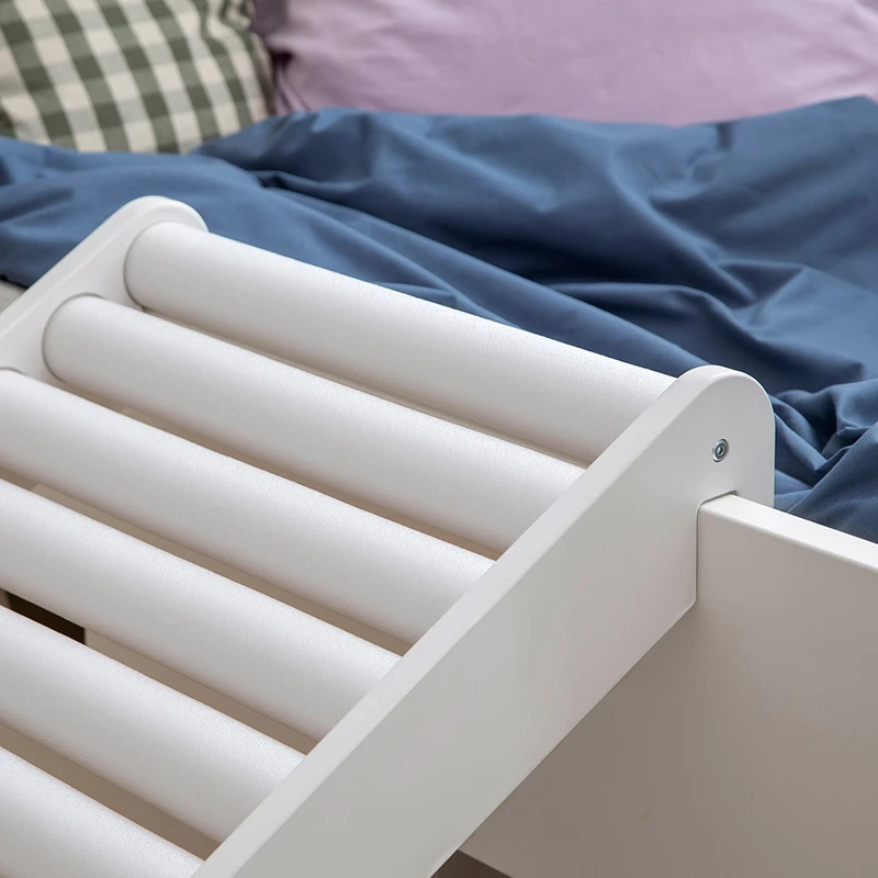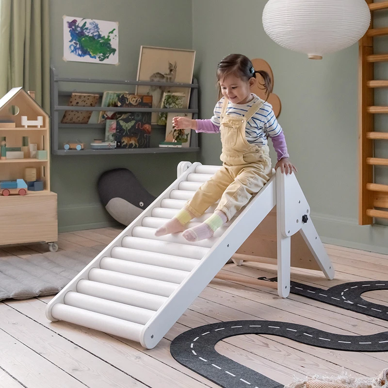 Diese Rollenrutsche macht das morgendliche Aufstehen zum Vergnügen – und das Training der Motorik zum Kinderspiel. Sie kann kinderleicht an das sebra Bett „Baby & Jr.“ sowie an das neue Kletterdreieck des dänischen Herstellers montiert werden. Die flexiblen Schaumstoffrollen gleiten sanft nach unten und sorgen für ein gutes motorisches Training.