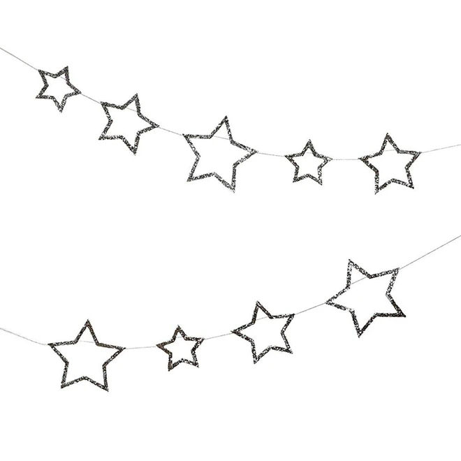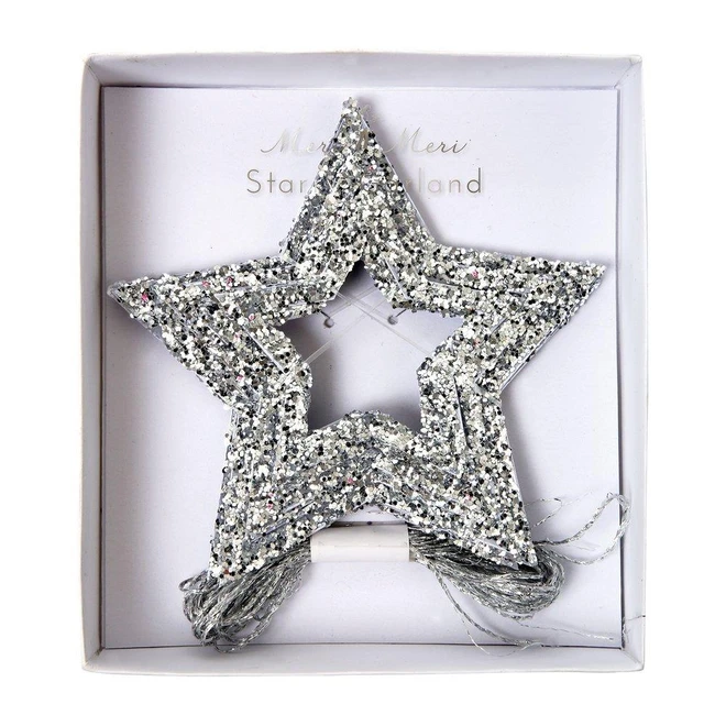 Diese dekorative Mini-Girlande von Meri Meri darf auf der nächsten Party nicht fehlen: Sie enthält silbern schimmernde Sterne und sorgt für die Extraportion Glitter auf der Feier – damit das Geburtstagskind hell erstrahlt!