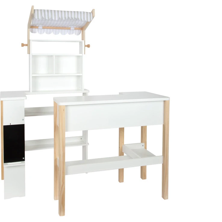 • kompakter Kaufladen aus Holz mit abnehmbarer Stoffmarkise