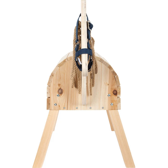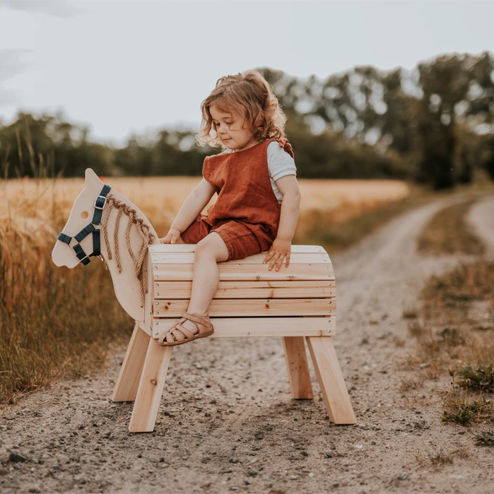 Diese kompakte Version eines Holzpferdes von small foot ist der ideale Spiel-, Reit- und Voltigierpartner für noch junge Pferdenarren. Mit der geringen Rückenhöhe von rund 49 cm ist das Pferdchen auch für kleine Reiterinnen und Reiter problemlos und sicher erklimmbar. Ausgestellte Beine sorgen für einen besonders stabilen Stand, während der per Klapptür verschließbare Stauraum im Pferdebauch Platz für das mitgelieferte Halfter und weiteres Zubehör bietet. Mähne und Schweif sind übrigens frisierbar!