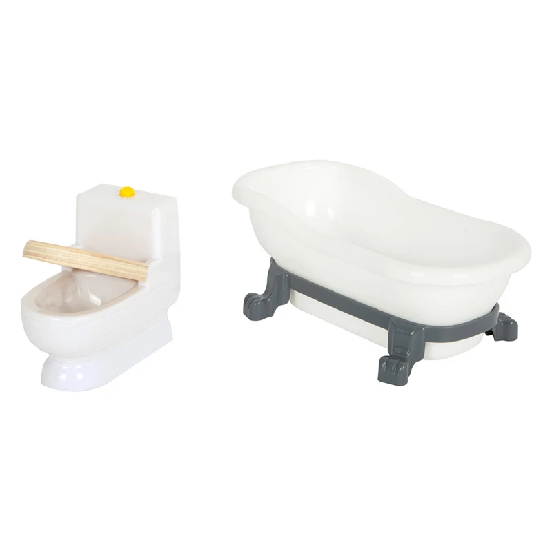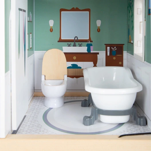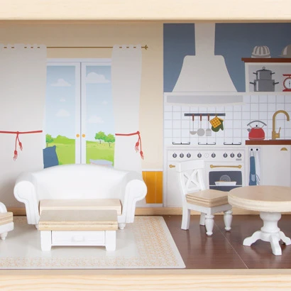 • umfangreiches Mobiliar aus Kunststoff mit Holzdetails für realistisches Spielvergnügen