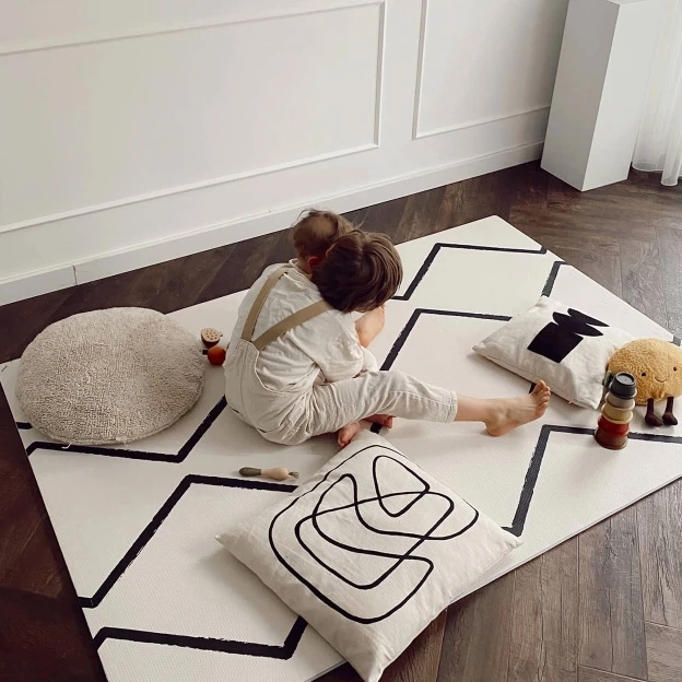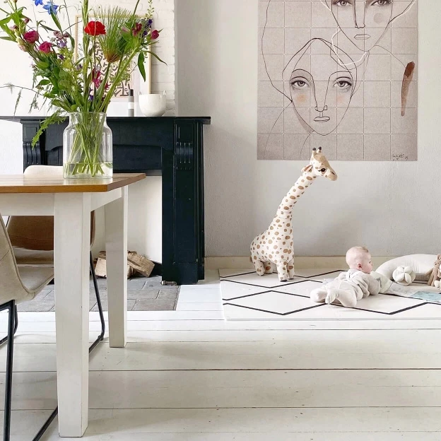 Rutschfest, weich, Allergikerfreundlich und leicht zu reinigen: Die aus hochwertigem EVA-Schaum bestehenden Spielmatten von eeveve sind ideal für das tägliche Spiel von Babys und Kleinkindern geeignet, können aber auch von Erwachsenen genutzt werden – etwa für Yoga-Übungen oder Pilates. Da sie eine dämpfende Wirkung haben, sind sie auch sehr gut unter einer Schaukel, einem Spielring oder einer Rutsche verwendbar. Jede der Matten besteht aus mehreren Fliesen, die im Stil eines Puzzles miteinander kombiniert werden können, ohne dass sichtbare Übergänge entstehen. Das sorgt gleichzeitig dafür, dass sich mehrere Spielmatten – auch in anderen Farbtönen und Mustern – zu einer großen zusammenfügen lassen.