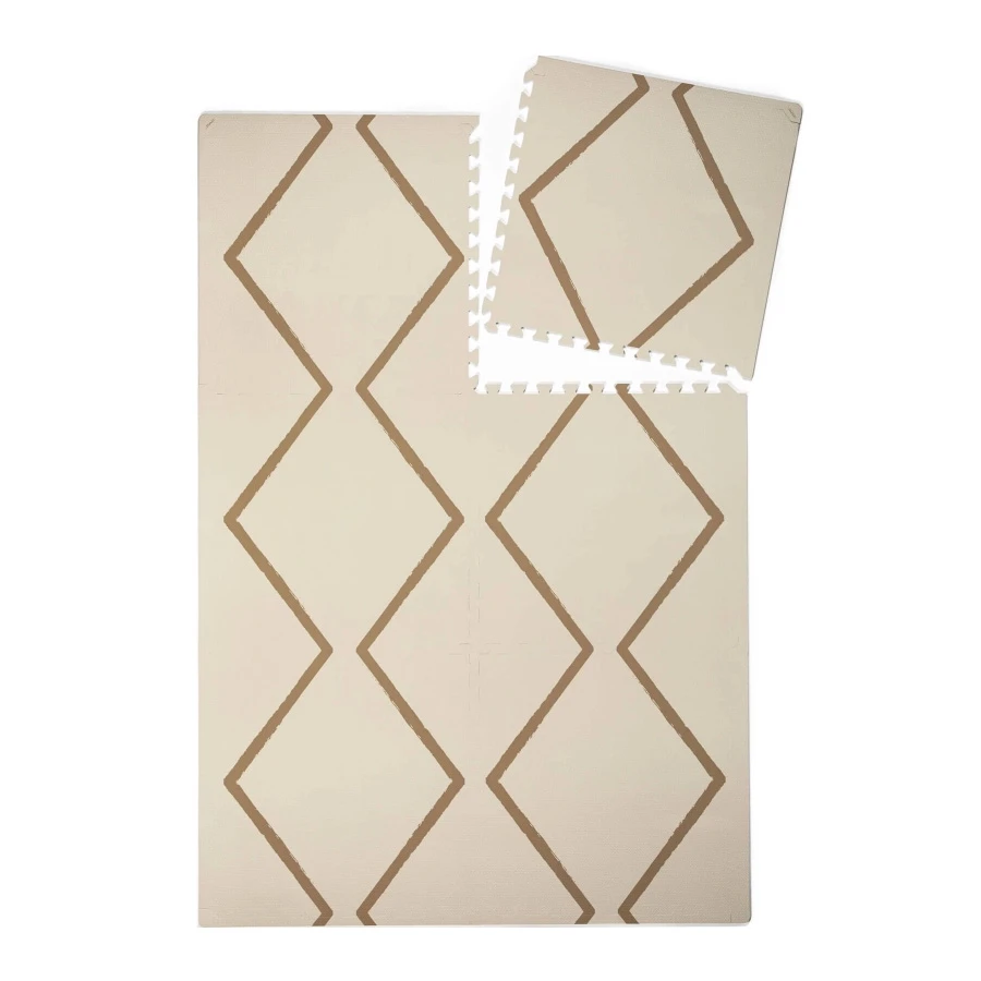 Rutschfest, weich, Allergikerfreundlich und leicht zu reinigen: Die aus hochwertigem EVA-Schaum bestehenden Spielmatten von eeveve sind ideal für das tägliche Spiel von Babys und Kleinkindern geeignet, können aber auch von Erwachsenen genutzt werden – etwa für Yoga-Übungen oder Pilates. Da sie eine dämpfende Wirkung haben, sind sie auch sehr gut unter einer Schaukel, einem Spielring oder einer Rutsche verwendbar. Jede der Matten besteht aus mehreren Fliesen, die im Stil eines Puzzles miteinander kombiniert werden können, ohne dass sichtbare Übergänge entstehen. Das sorgt gleichzeitig dafür, dass sich mehrere Spielmatten – auch in anderen Farbtönen und Mustern – zu einer großen zusammenfügen lassen.