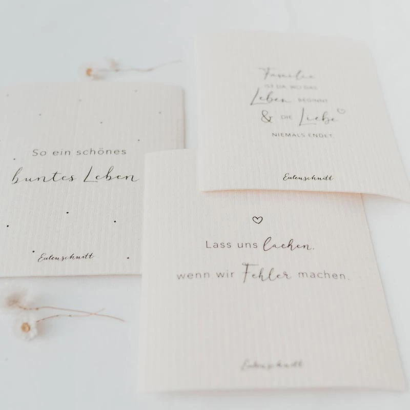 Diese kleinen Helferlein kommen beim Hausputz gerade recht! Mit aufmunternden Sprüchen verziert, machen die komplett kompostierbaren Schwammtücher von Eulenschnitt einiges her – und wirken natürlich auch effektiv gegen Verschmutzungen. Ihre wahre Stärke liegt vor allem in der Saugfähigkeit. Bei der Nutzung hinterlassen sie auch keinerlei Fusseln.