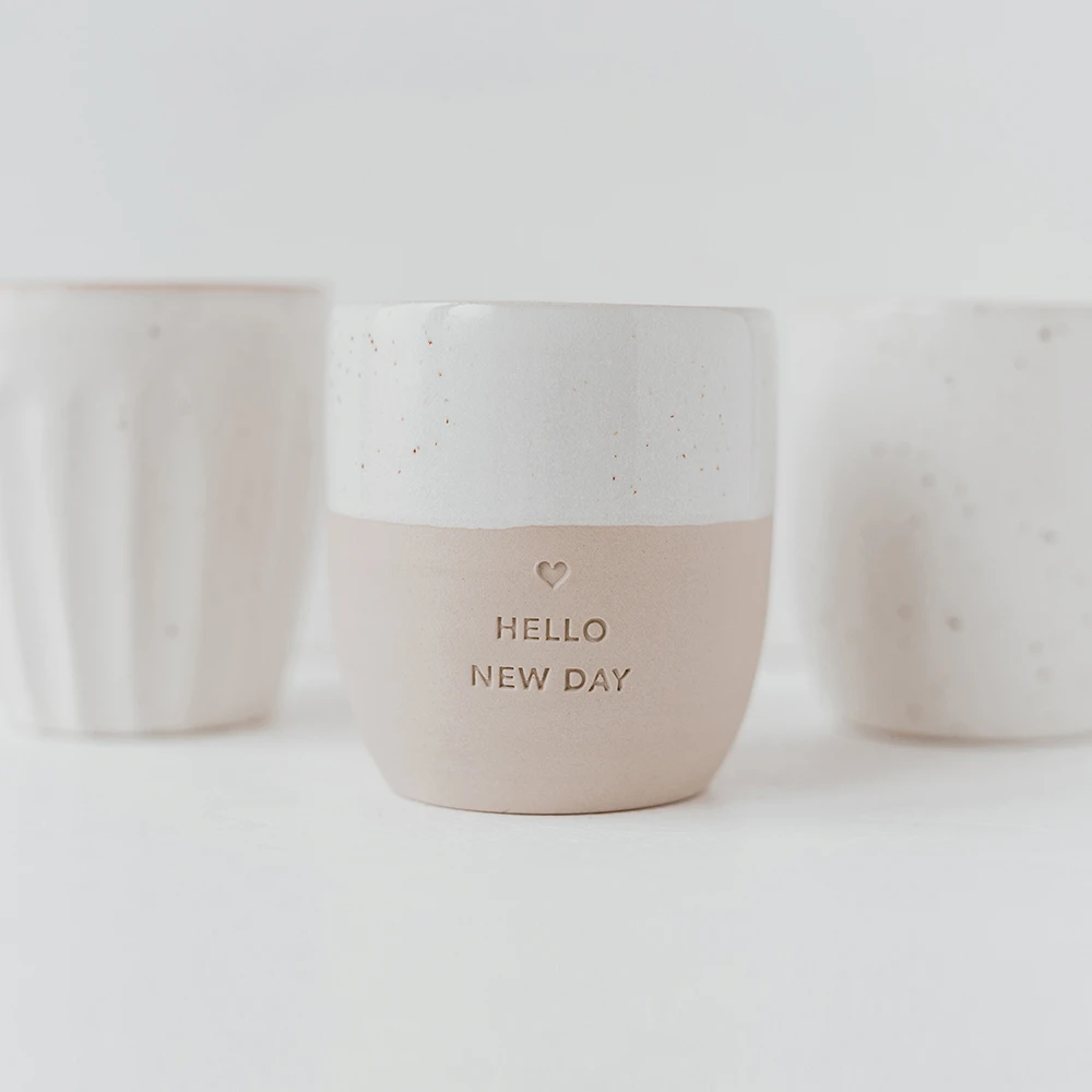 Die Steingut-Becher von Eulenschnitt sind dank des verwendeten Materials nicht nur äußerst hochwertig und stilvoll – jedes Exemplar ist dazu auch noch ein echtes Unikat, hergestellt in liebevoller Handarbeit in einer kleinen Töpferei aus Portugal. Versehen sind sie mit schönen Blindprägungen für jeden Anlass – so schmeckt das eingefüllte Getränk gleich noch besser!