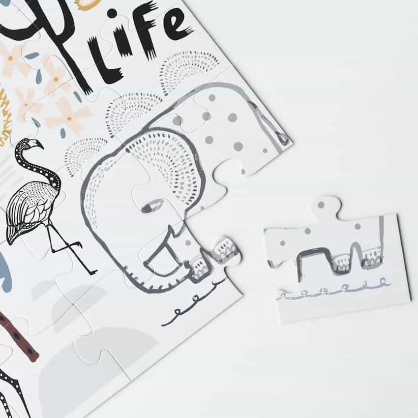 In 24 Puzzle-Teilen wird dem Kind die Tierwelt in all ihren Facetten näher gebracht. Mit dabei sind Elefanten, Krokodile und Giraffen – echte Exoten also! Die einzelnen Teilchen sind dabei groß genug, um kognitive und motorische Fähigkeiten spielend leicht zu trainieren.