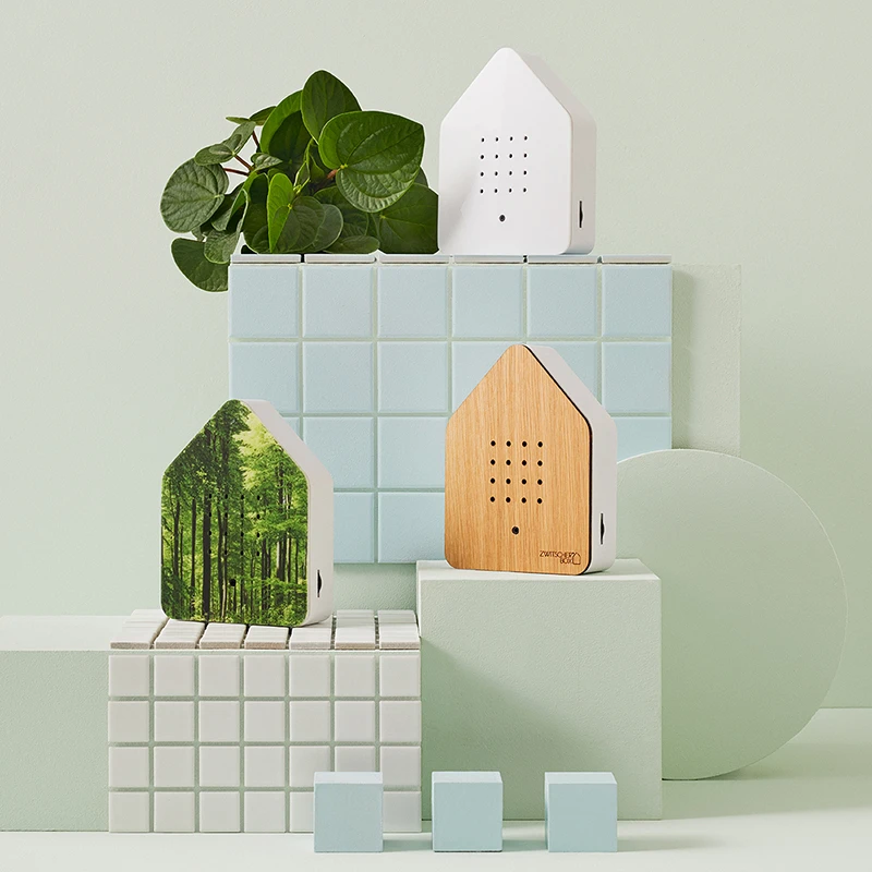Mit der „Zwitscherbox“ ist für eine entspannende Soundkulisse gesorgt: Der batteriebetriebene Mini-Lautsprecher spielt beruhigende Naturklänge und Vogelgezwitscher ab – beides soll unter anderem Stress reduzieren und den Alltag einfach mal Alltag sein lassen. Sobald der Bewegungsmelder einen Impuls registriert, startet das zweiminütige „Vogel-Konzert“.